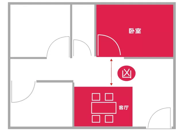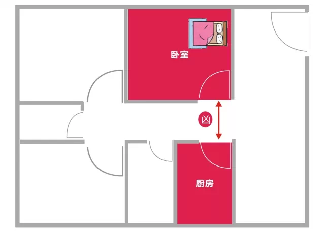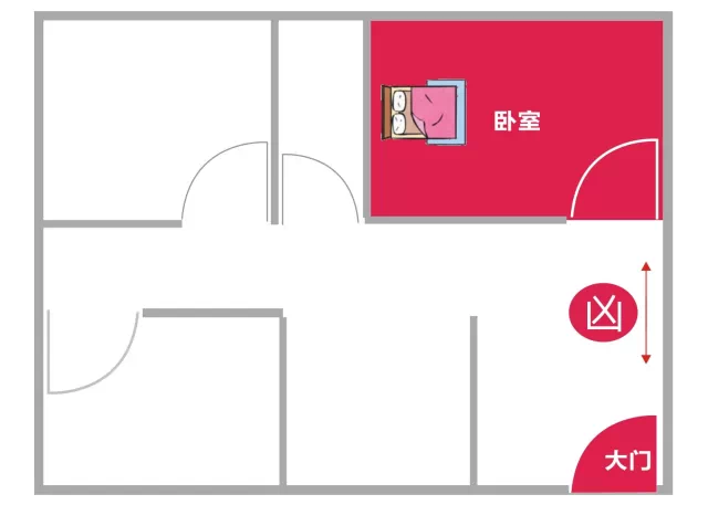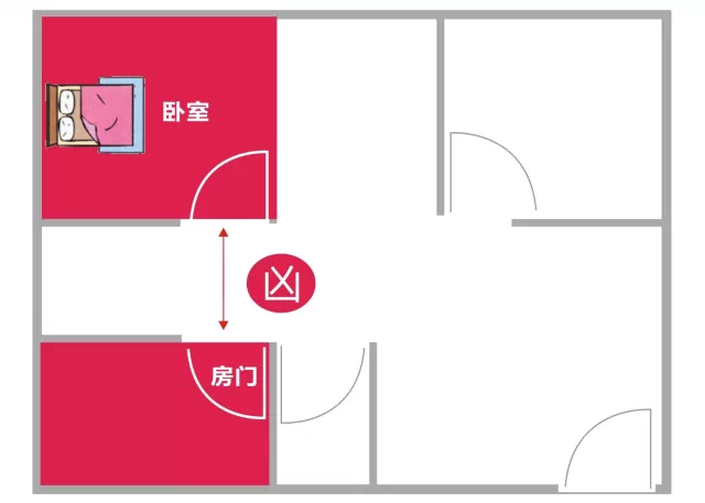卧室的门正对着如书房门或其他辅助门,易出现“斗口煞”的格局;家中在职者工作上易有小人背后放冷箭;家中学子易与父母顶嘴,学业不理想。