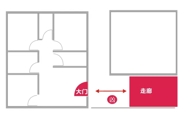 大门正对走廊,形成“穿心剑”的格局,导致事业冲击较大,竞争激烈;若大门正对走廊时,大门在正西方,则家中少女在学业上易受外界的干扰,成绩退步。